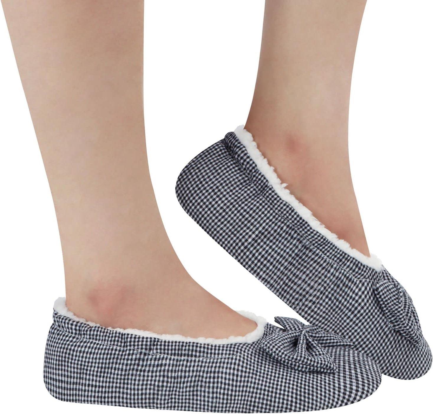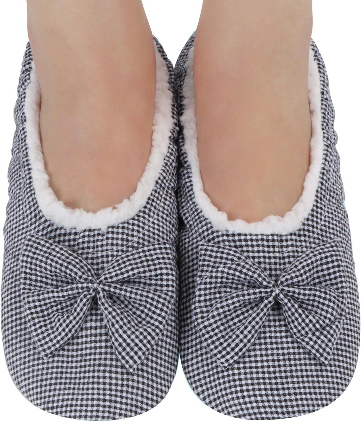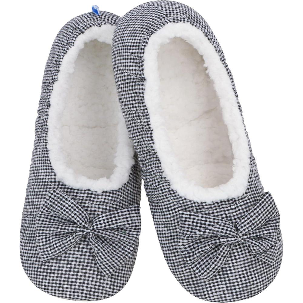 Snoozies Ballerina Slippers for Women with Bow – Cute Slipper Socks for Women Indoor – Non Skid Sole and Soft Sherpa Lining(Black)