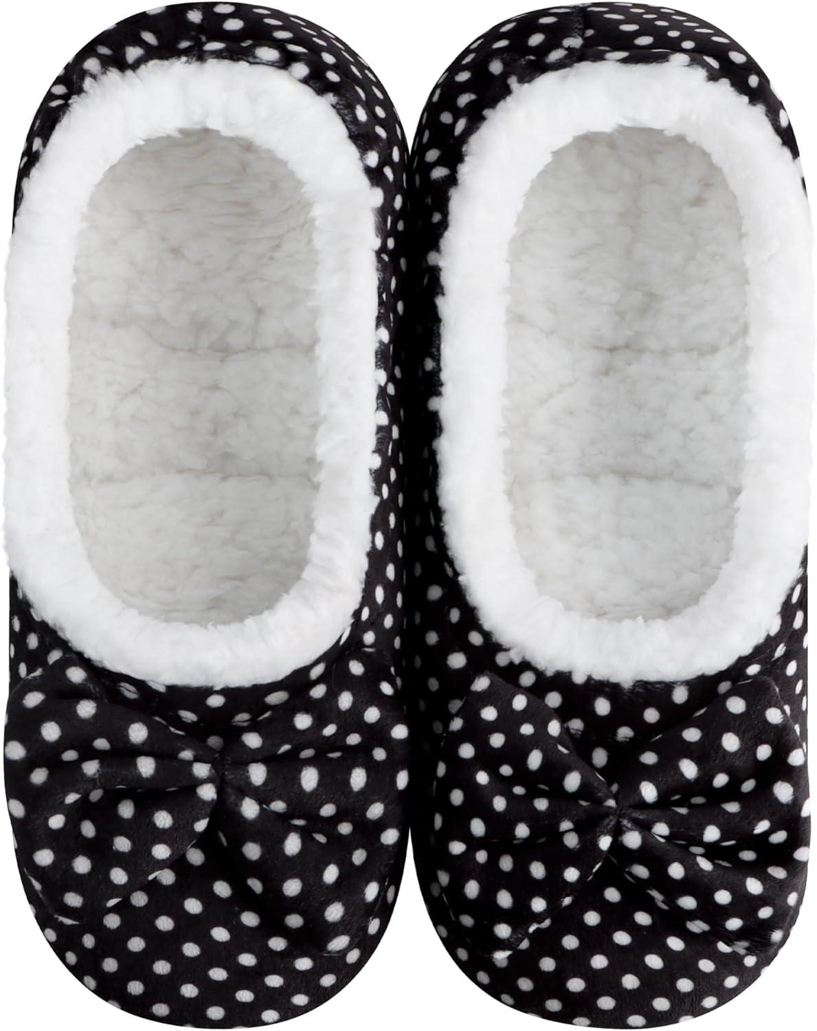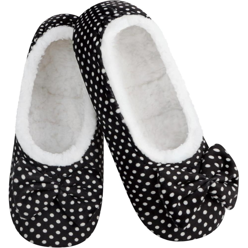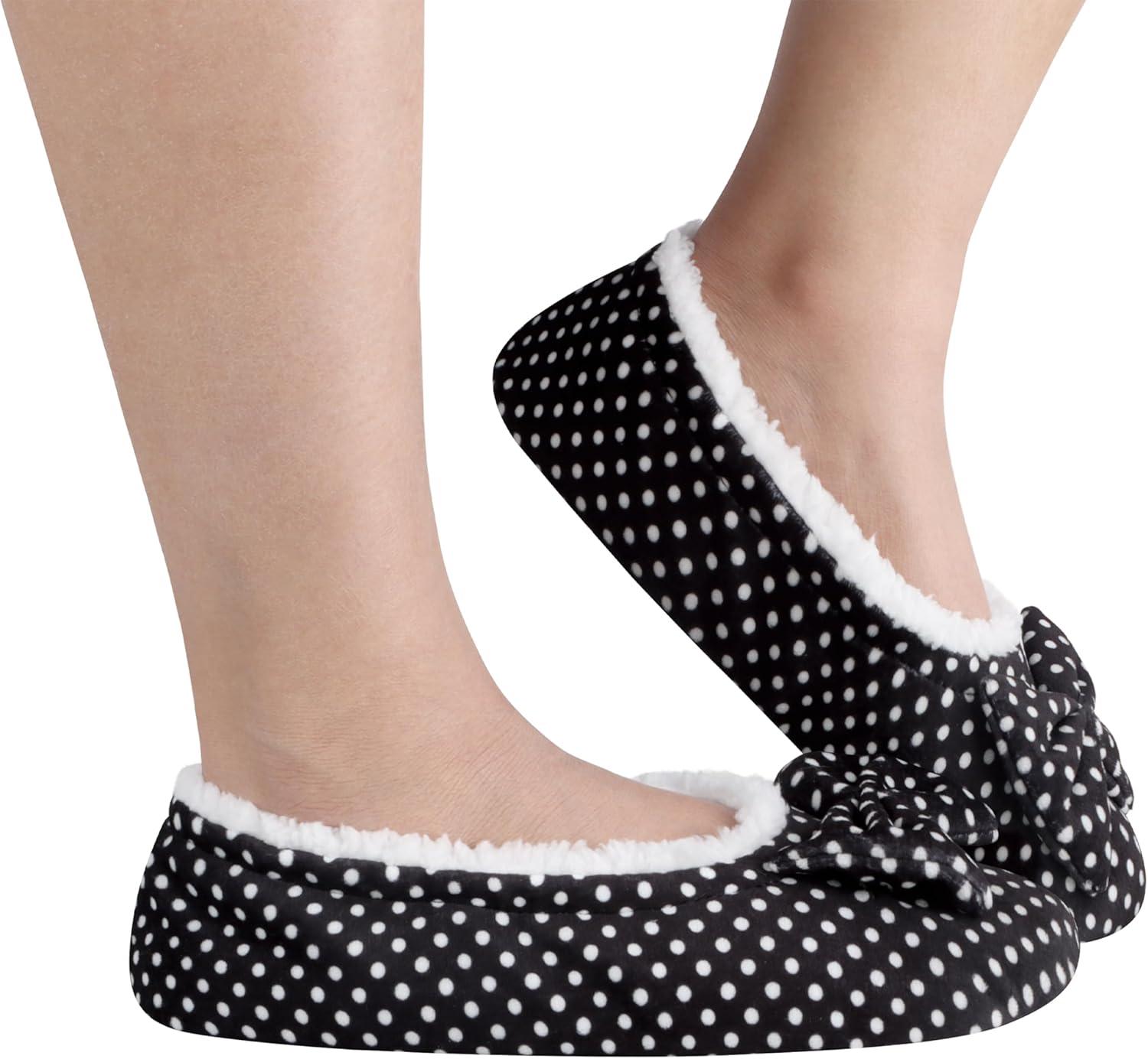 Snoozies Ballerina Slippers for Women with Bow – Cute Slipper Socks for Women Indoor – Non Skid Sole and Soft Sherpa Lining(Bwdot)