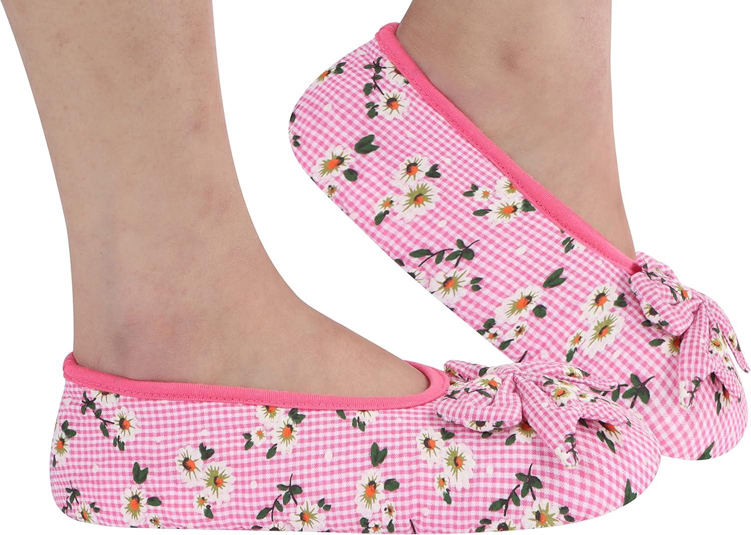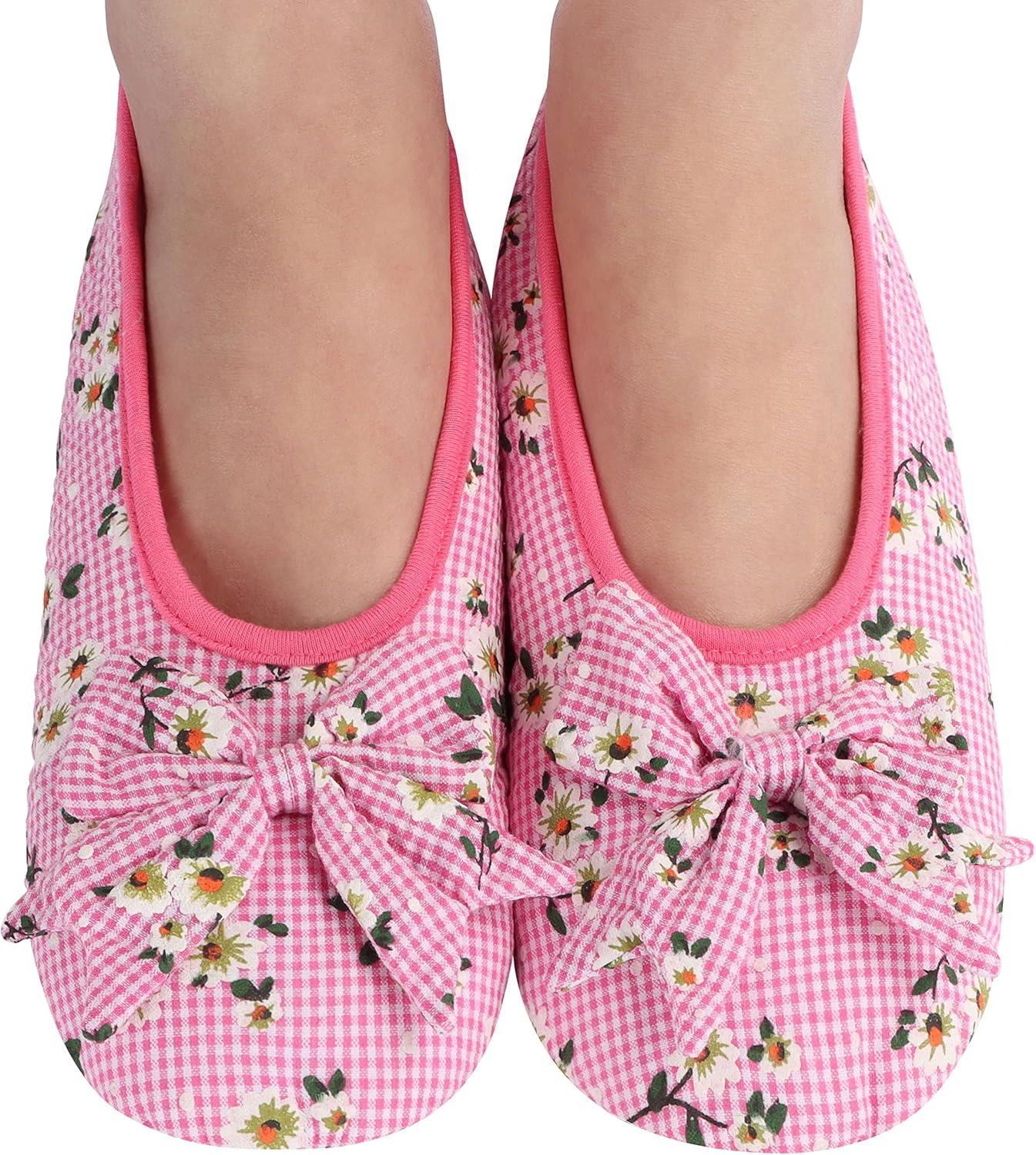 Snoozies Ballerina Slippers for Women with Bow – Cute Slipper Socks for Women Indoor – Non Skid Sole and Soft Sherpa Lining(Pink 3)