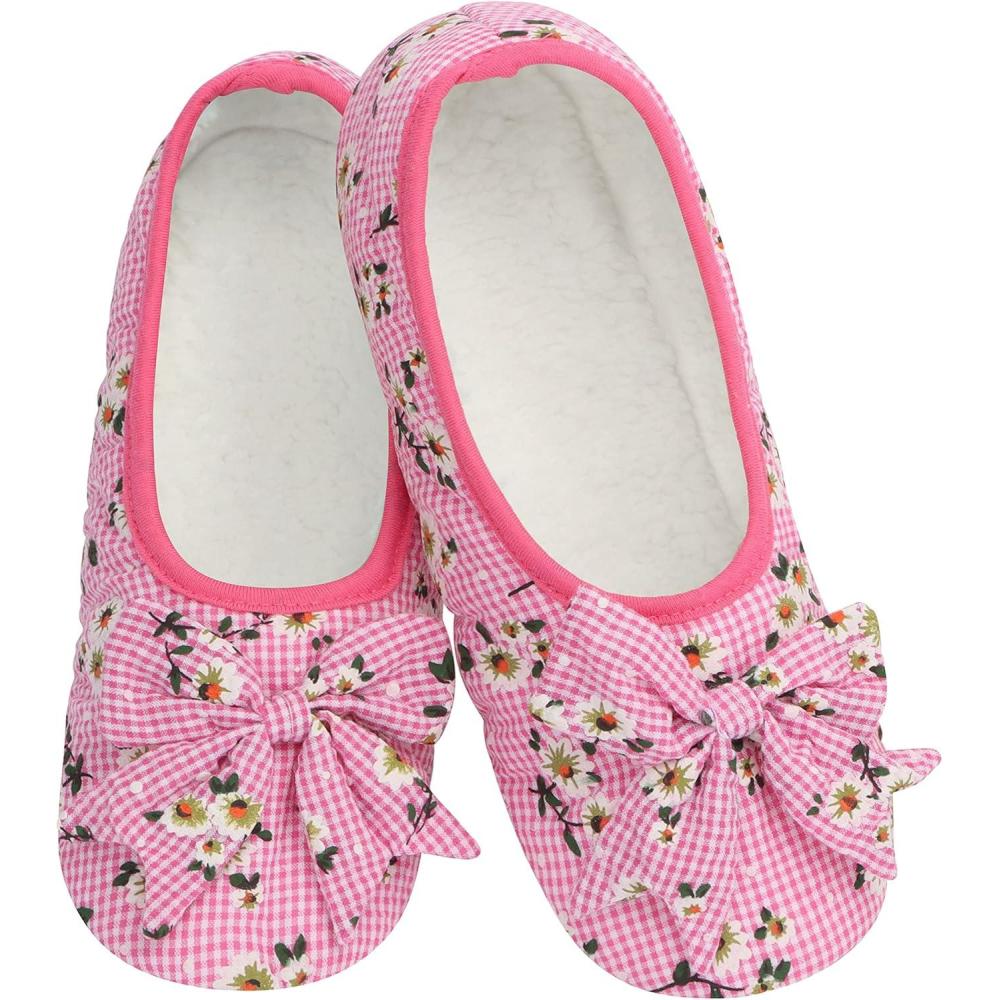 Got cold feet? Get your Snoozies on! These travel-friendly women's slippers combine comfort and style with a feminine front bow, fun and fashionable prints, and a cozy sherpa lining.