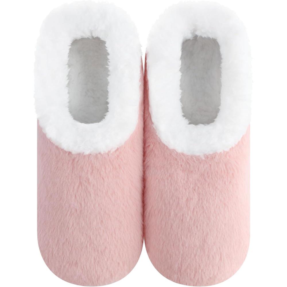 Snoozies Butter Soft House Slippers for Women, Cozy Sherpa-Lined Slipper Socks for Women Soft Sole Non-Skid Machine Washable(Pale Pink)