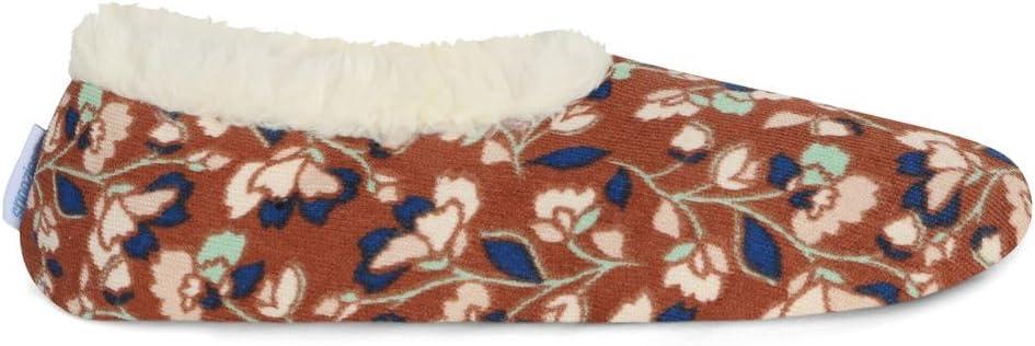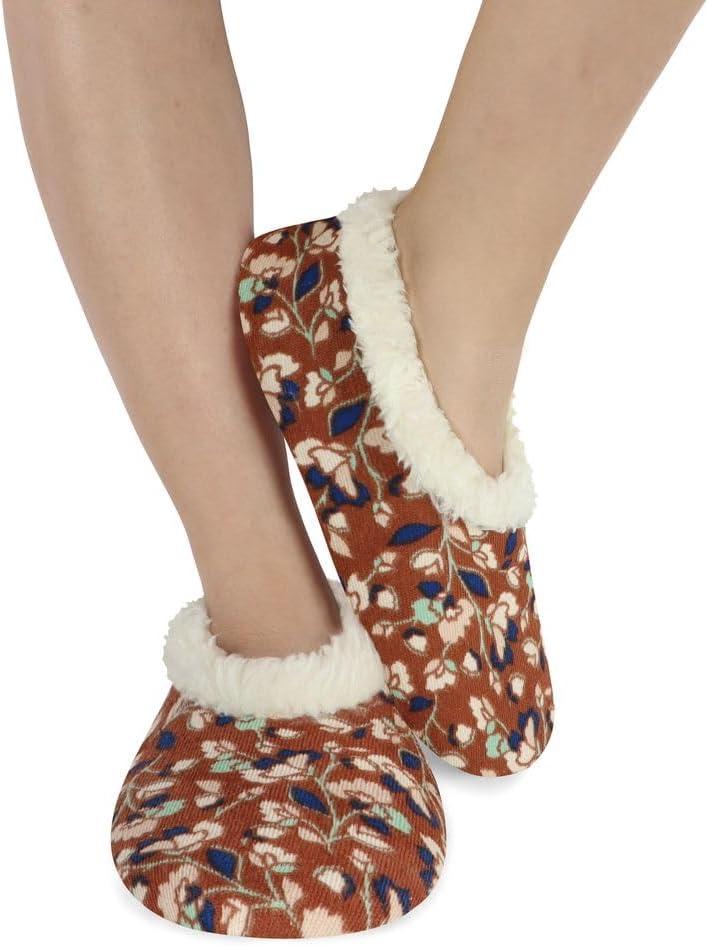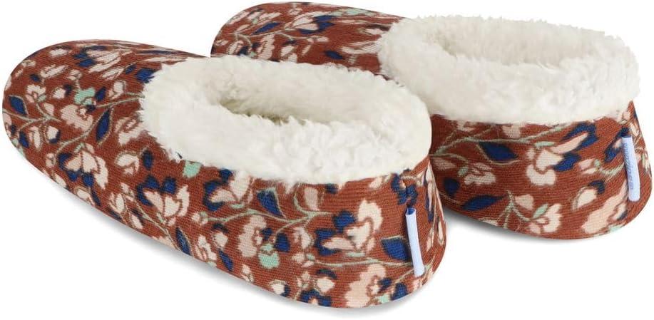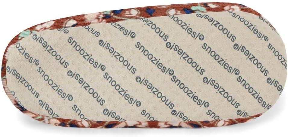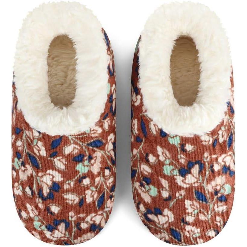 Snoozies slippers for women feature fine or wide-wale corduroy uppers and a cushioned memory foam insole for responsive support and lasting comfort. Fine-wale cord slippers also have a pretty floral print against a solid background. Lined with soft, cozy manmade sherpa fleece, they provide warmth and a snug fit, while the non-skid sole—covered with tiny rubber grippers and the Snoozies logo—helps ensure a safer step on various surfaces.