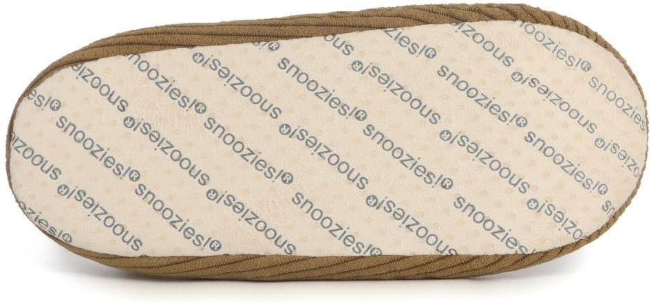 Snoozies slippers for women feature fine or wide-wale corduroy uppers and a cushioned memory foam insole for responsive support and lasting comfort. Fine-wale cord slippers also have a pretty floral print against a solid background. Lined with soft, cozy manmade sherpa fleece, they provide warmth and a snug fit, while the non-skid sole—covered with tiny rubber grippers and the Snoozies logo—helps ensure a safer step on various surfaces.