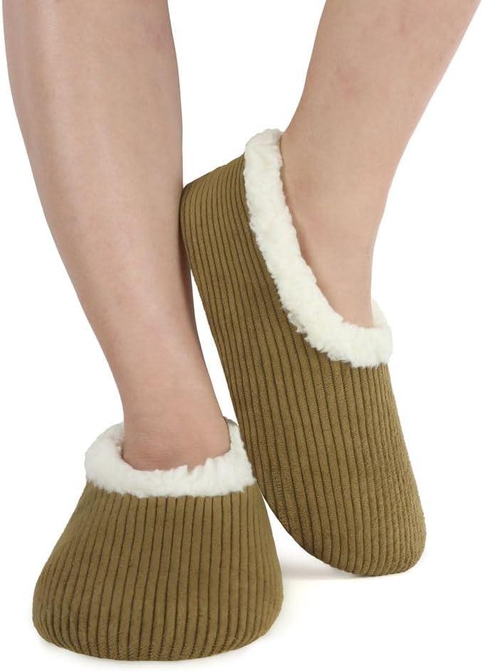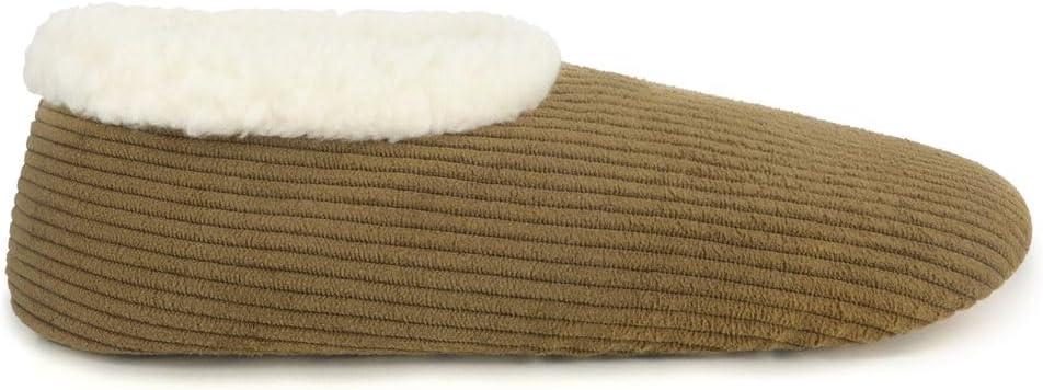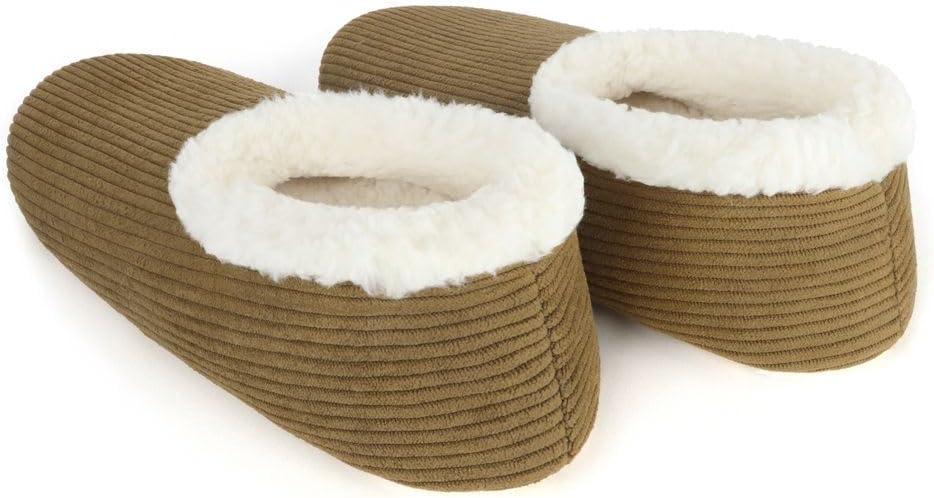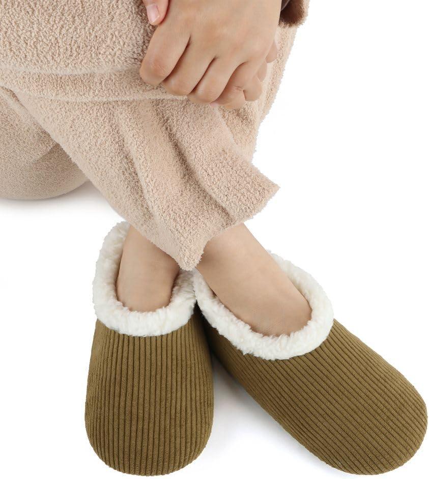 Snoozies Corduroy Slippers for Women with Memory Foam Insole, Sherpa-Lined Slipper Socks for Women Non-Skid(Olive Green)