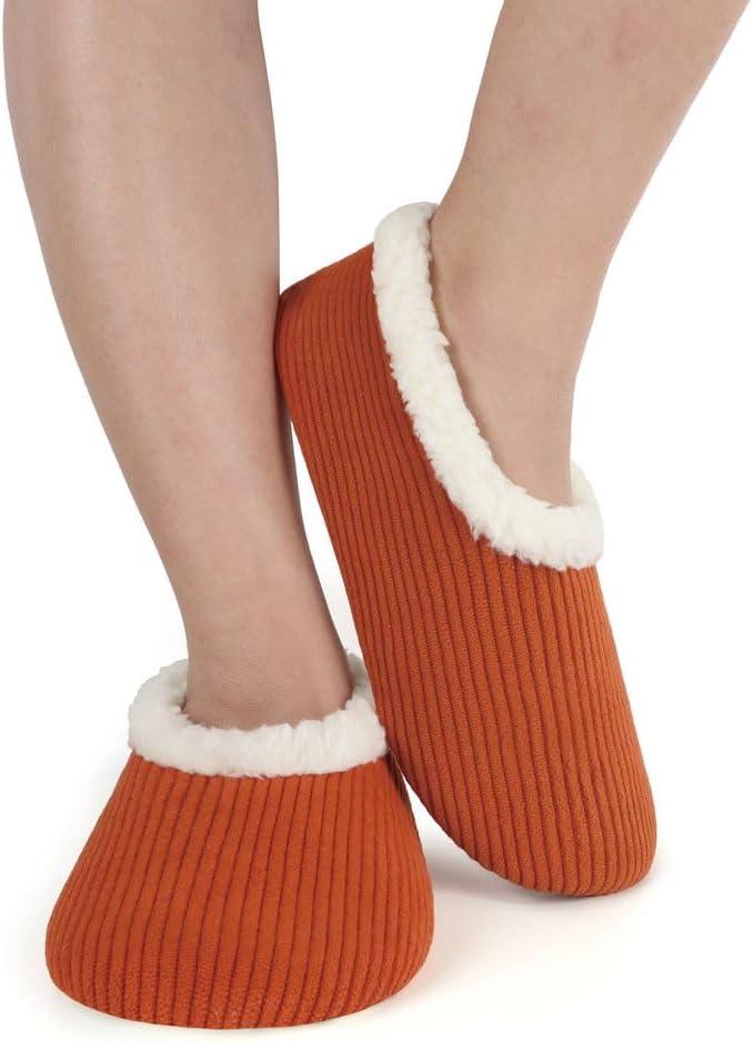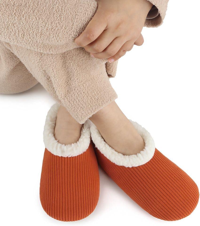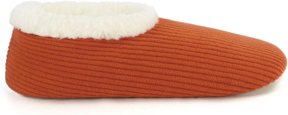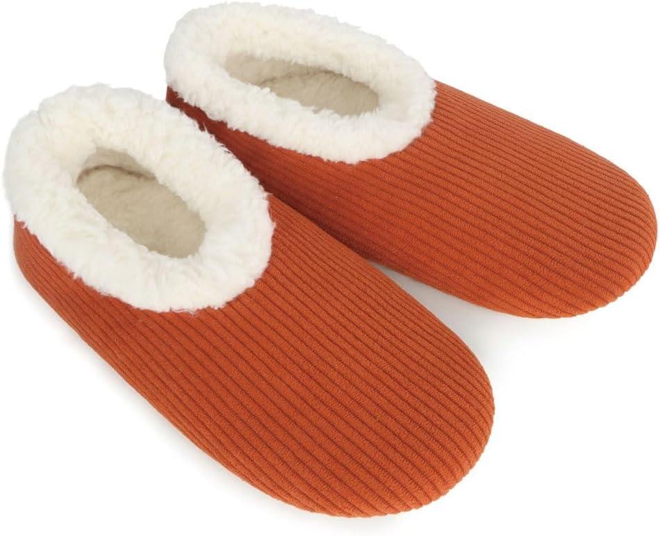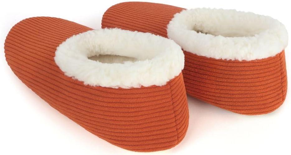 Snoozies Corduroy Slippers for Women with Memory Foam Insole, Sherpa-Lined Slipper Socks for Women Non-Skid(Orange Rust)