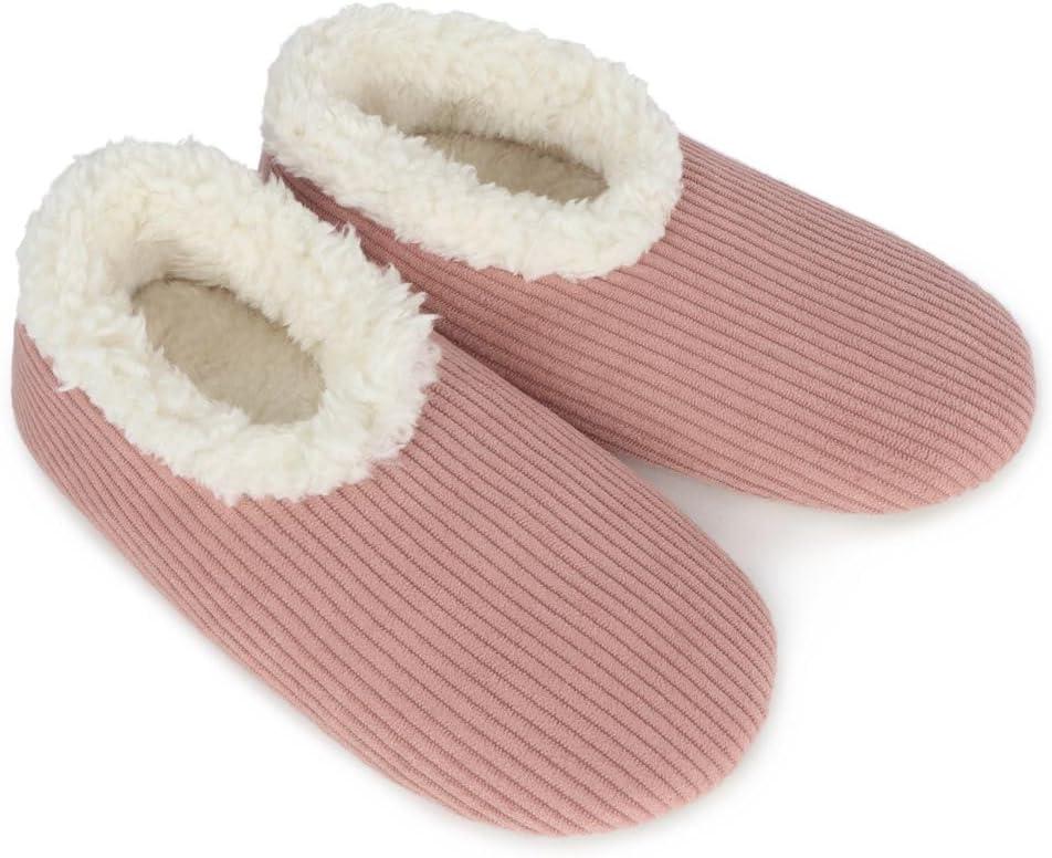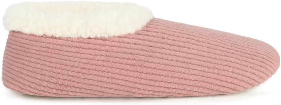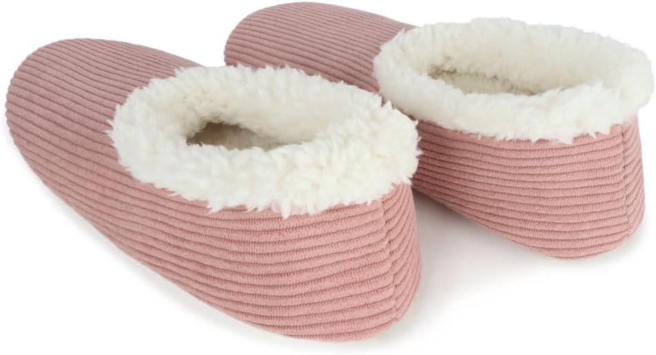 Snoozies Corduroy Slippers for Women with Memory Foam Insole, Sherpa-Lined Slipper Socks for Women Non-Skid(Peach Beige)