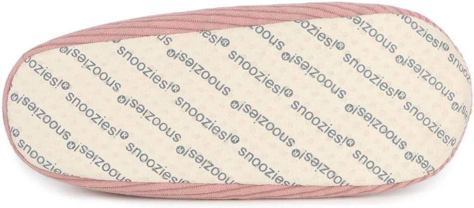 Snoozies slippers for women feature fine or wide-wale corduroy uppers and a cushioned memory foam insole for responsive support and lasting comfort. Fine-wale cord slippers also have a pretty floral print against a solid background. Lined with soft, cozy manmade sherpa fleece, they provide warmth and a snug fit, while the non-skid sole—covered with tiny rubber grippers and the Snoozies logo—helps ensure a safer step on various surfaces.