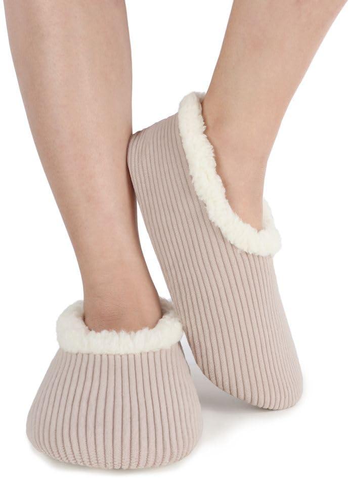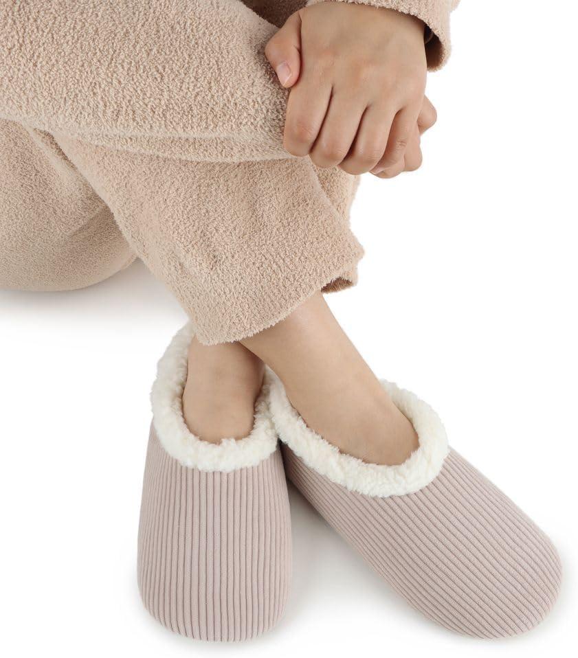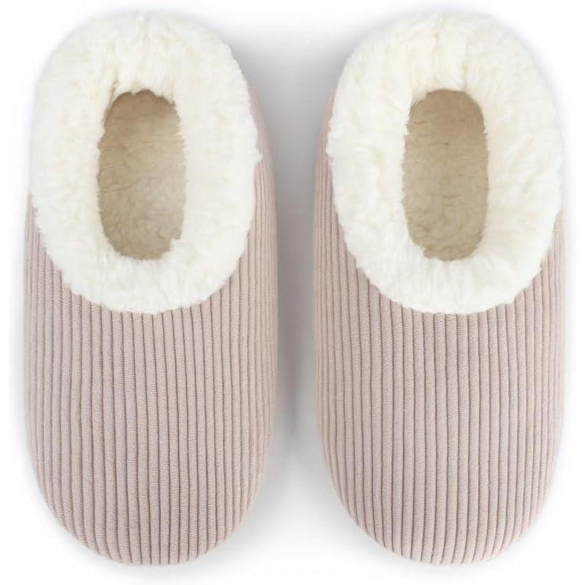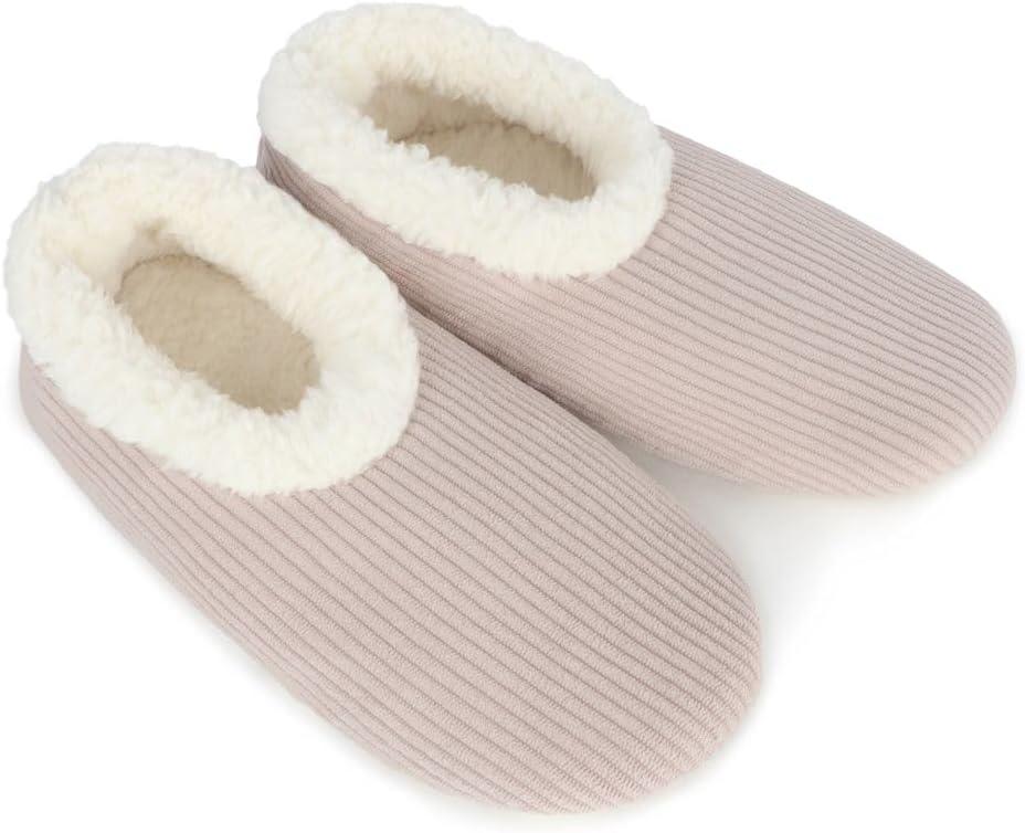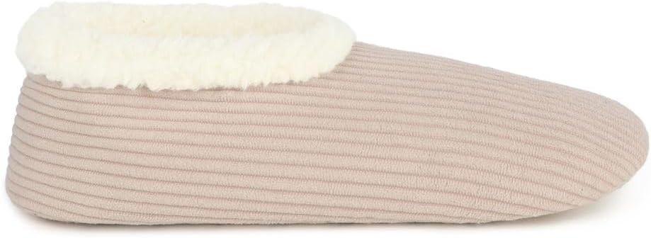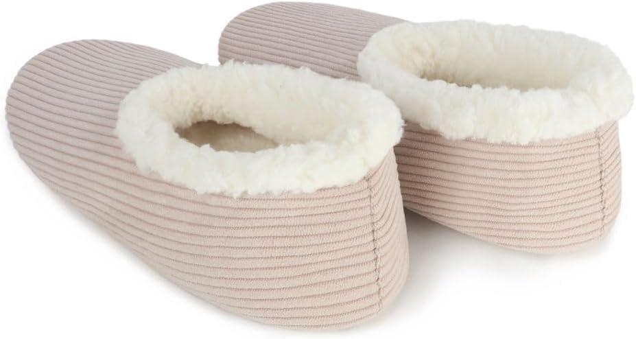 Snoozies Corduroy Slippers for Women with Memory Foam Insole, Sherpa-Lined Slipper Socks for Women Non-Skid(Peach Beige)