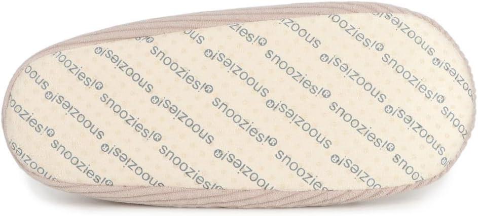 Snoozies slippers for women feature fine or wide-wale corduroy uppers and a cushioned memory foam insole for responsive support and lasting comfort. Fine-wale cord slippers also have a pretty floral print against a solid background. Lined with soft, cozy manmade sherpa fleece, they provide warmth and a snug fit, while the non-skid sole—covered with tiny rubber grippers and the Snoozies logo—helps ensure a safer step on various surfaces.