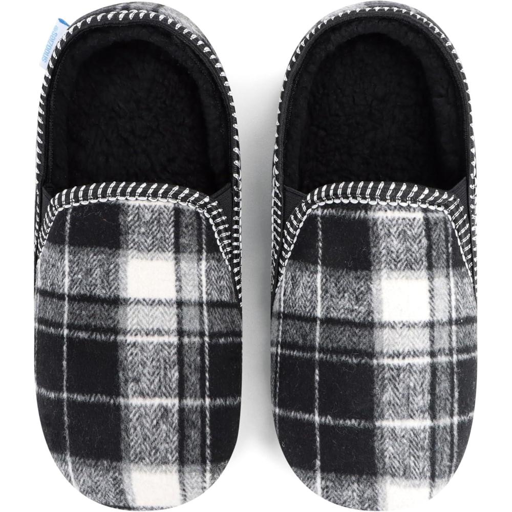 Snoozies Modern Alpine Plaid Memory Foam Slippers for Men Indoor, Soft Sherpa-Lined Mens House Shoes Non-Skid(Black)
