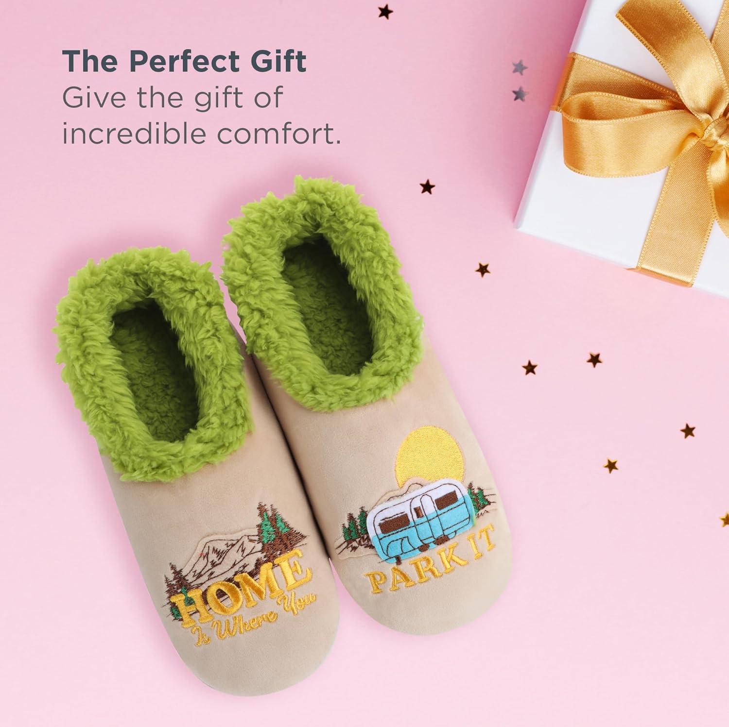 Snoozies Pairable Slipper Socks – Funny House Slippers for Women, Non-Slip Fuzzy Slipper Socks – Happy Camper(Home is Where You Park It)