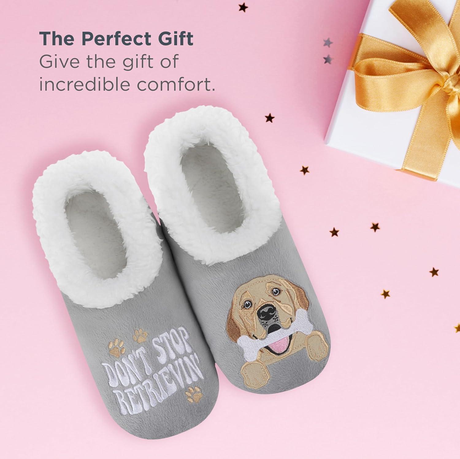 Snoozies Pairable Slipper Socks – Funny House Slippers for Women, Non-Slip Fuzzy Slipper Socks(Don’t Stop Retrievin’)