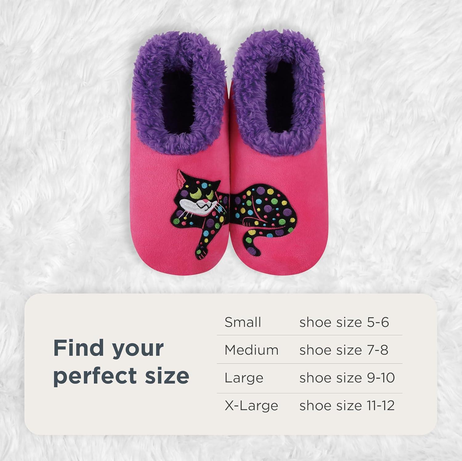 Snoozies Pairables fluffy and fun slippers for women keep your feet comfy and warm all year long, featuring a cute and different design on each foot that complements the other. Women's slippers are lined with exclusive pom pom Sherpa for a cozy feel and have a soft, non-skid sole. Snoozies make for practical and thoughtful gifts for hospital stays, ideal for postpartum recovery, or as presents for women of all ages who appreciate comfort. Additionally, these house slippers are machine washable for easy care—just turn them inside out, machine wash cold, and air dry to keep them looking and feeling as good as new.