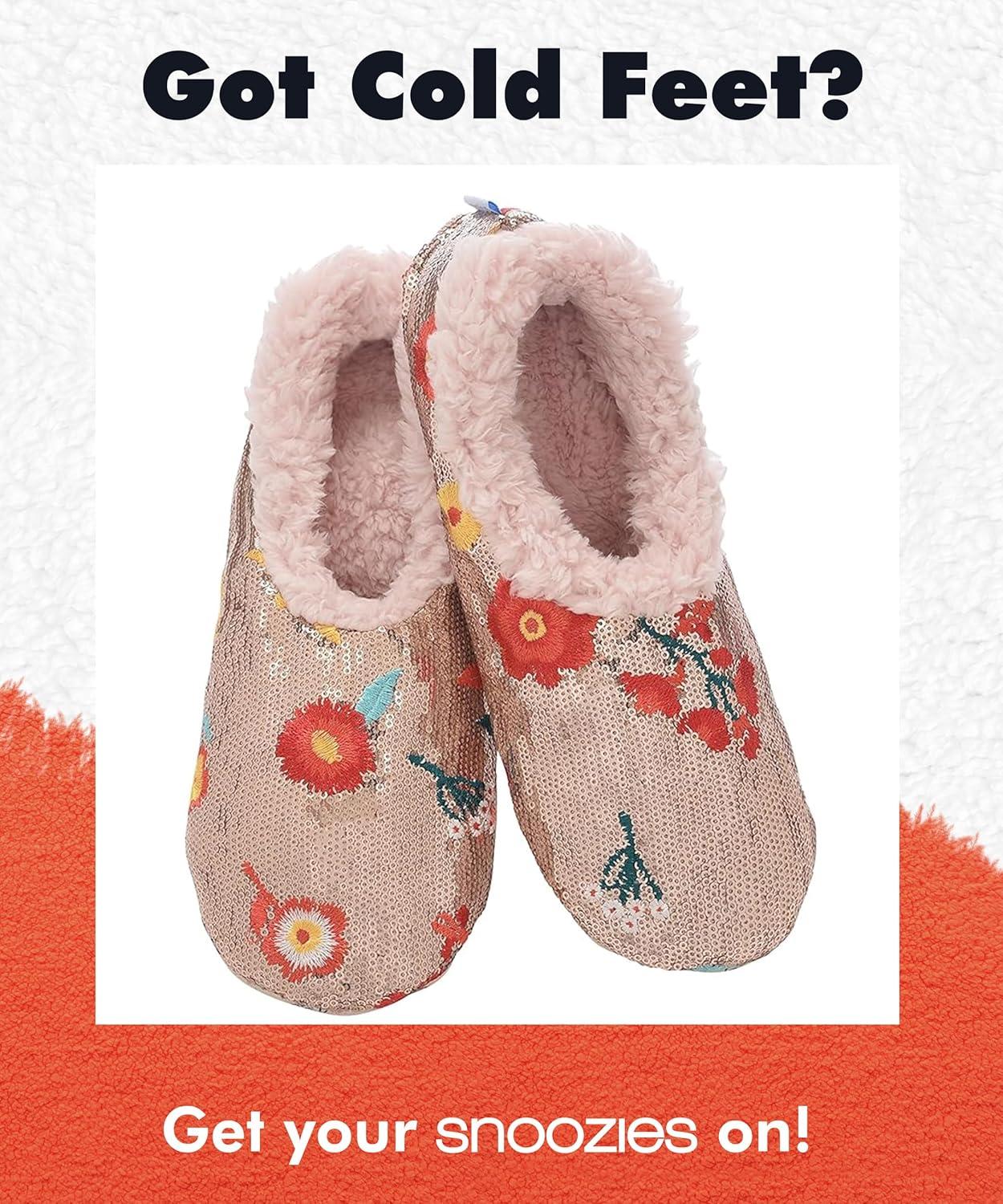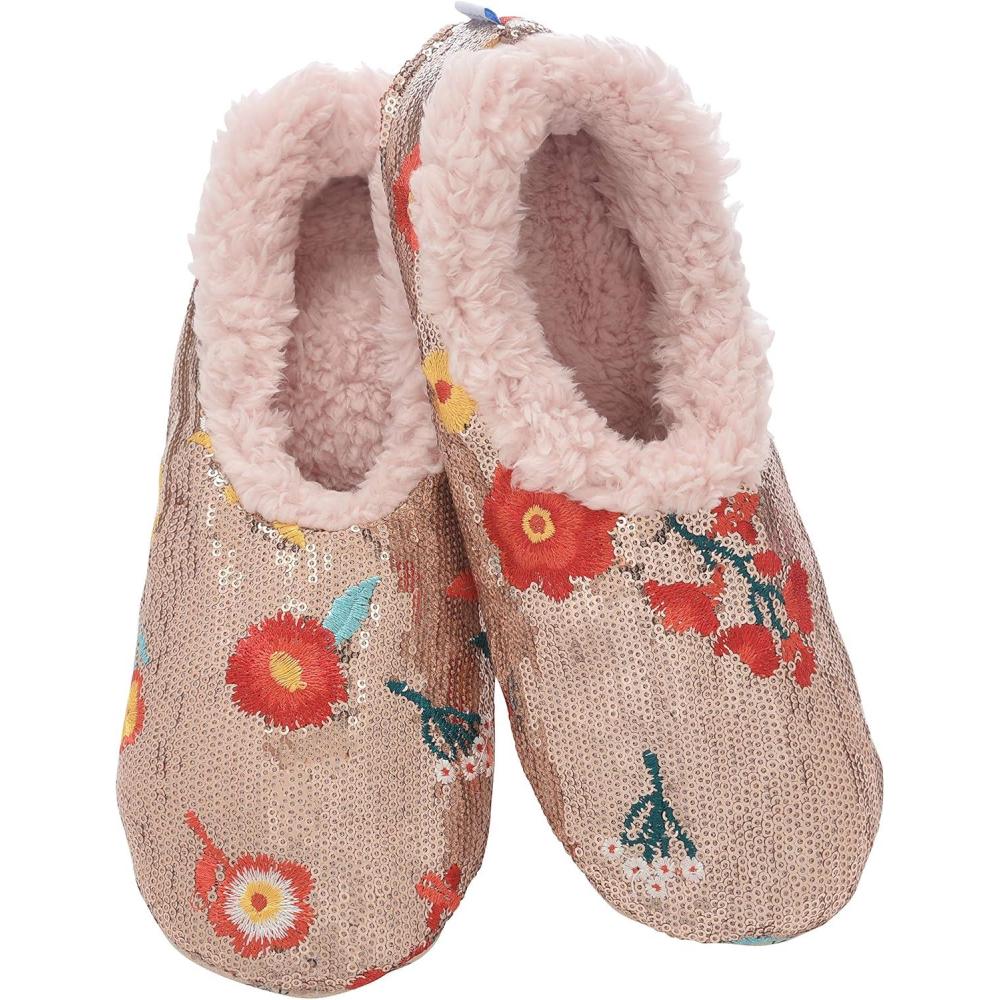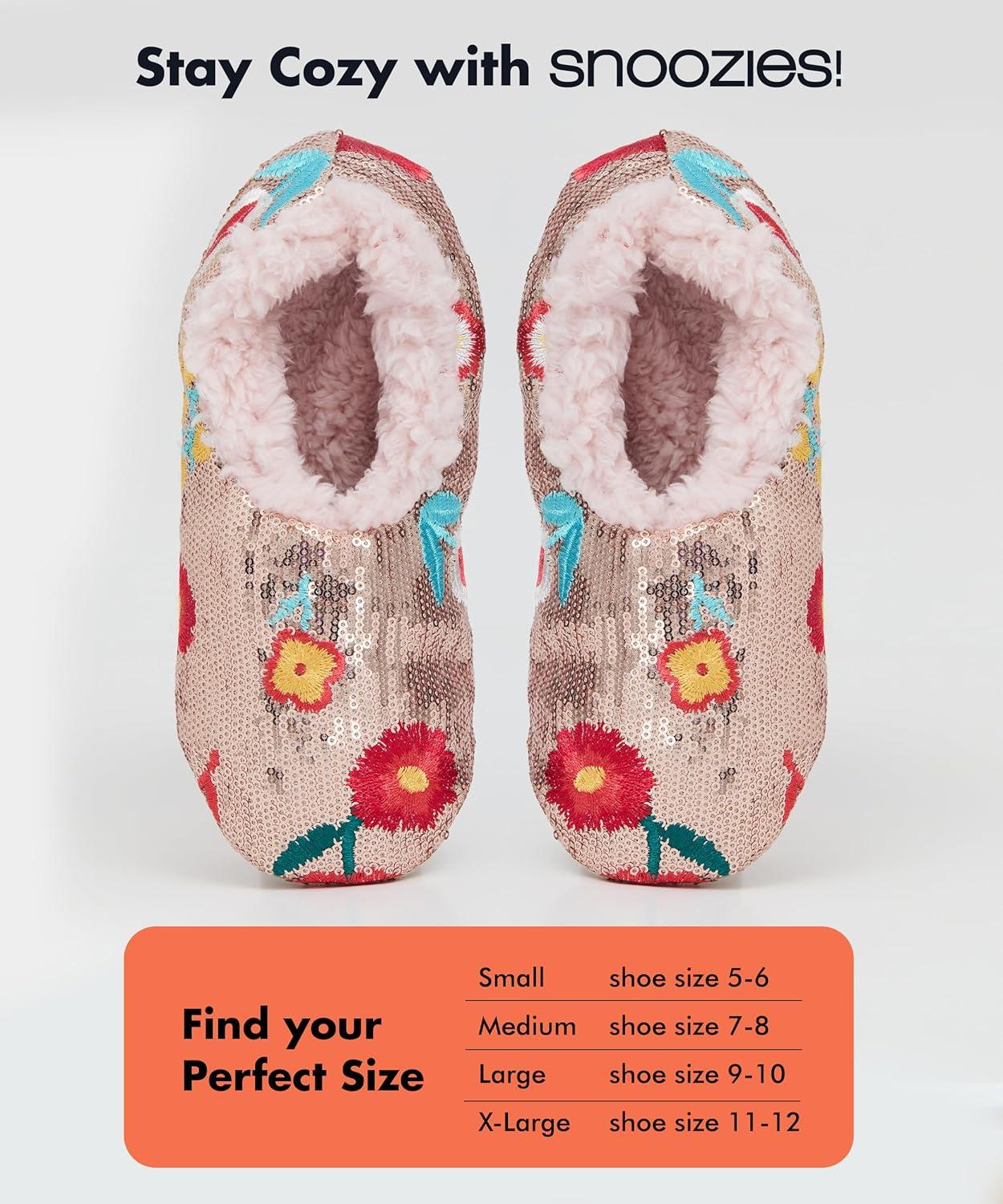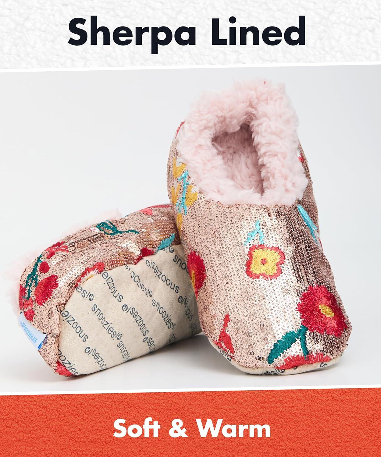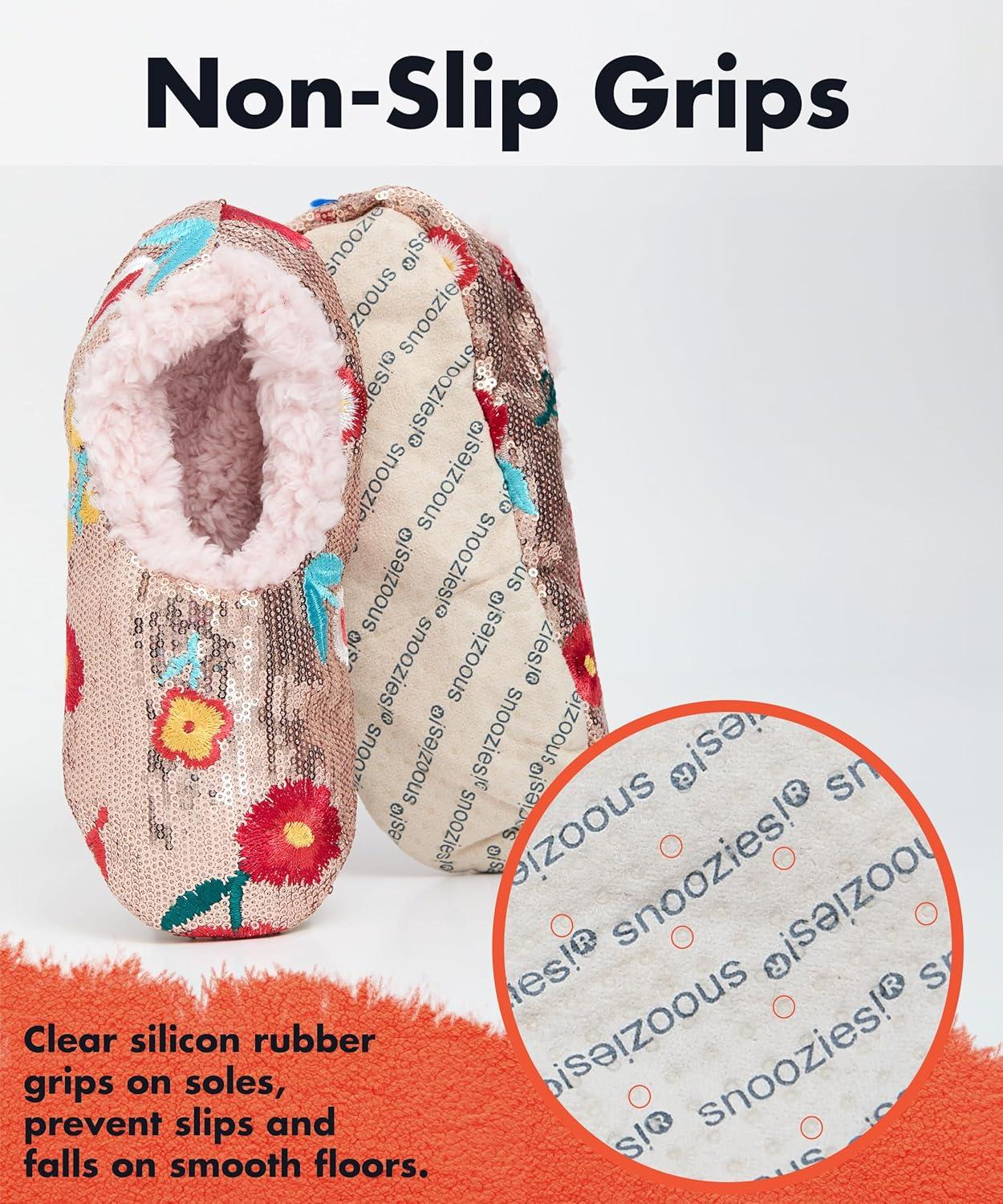Snoozies Sequin Slippers for Women – Fancy Glitters, Comfy and Cozy Sparkly Non-Slip Womens Slippers Socks(Blush)