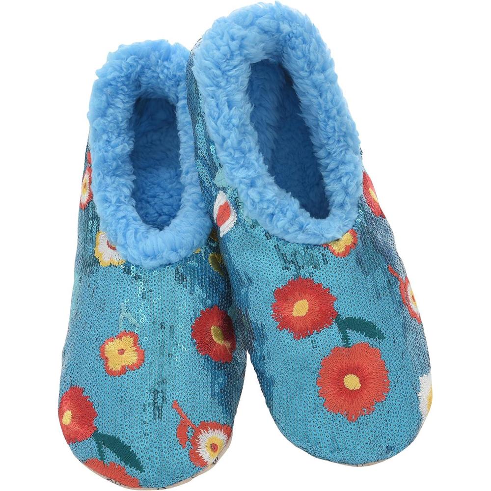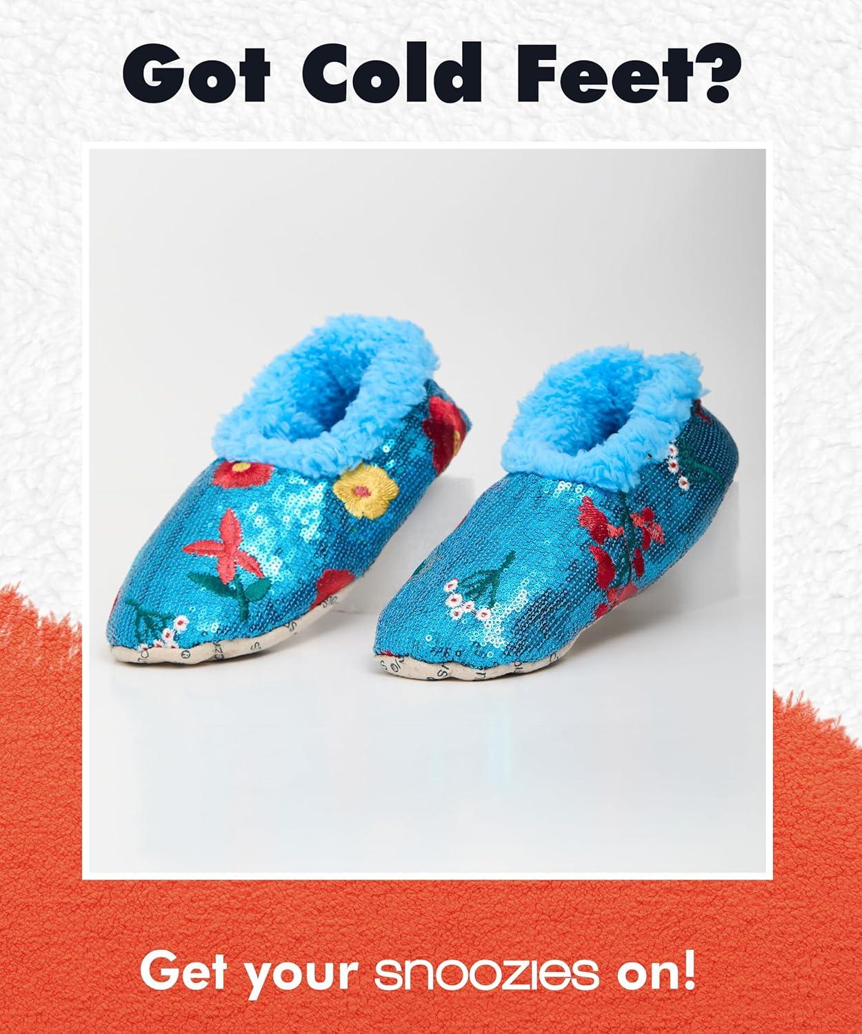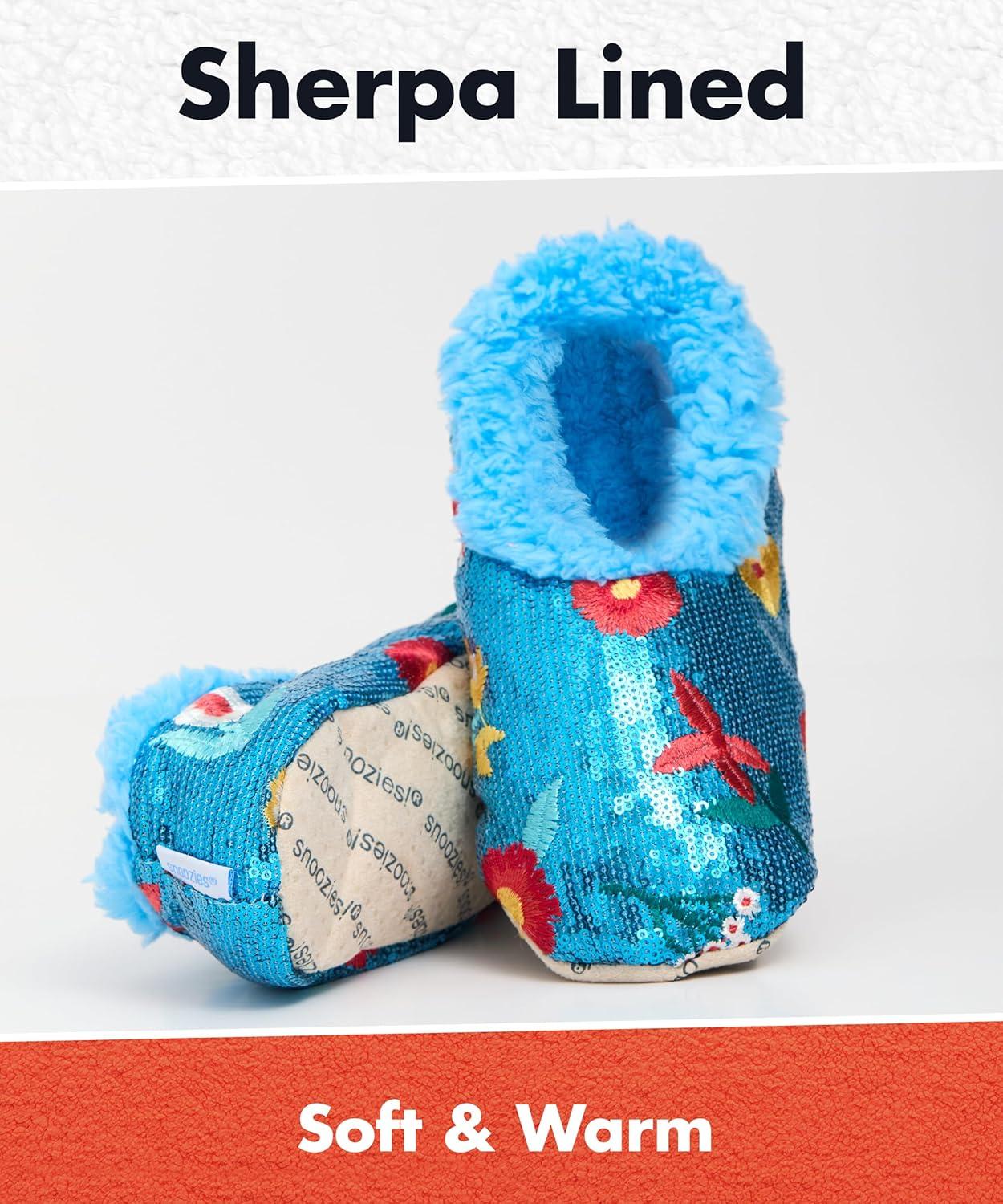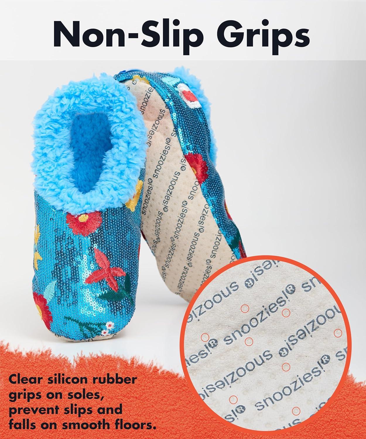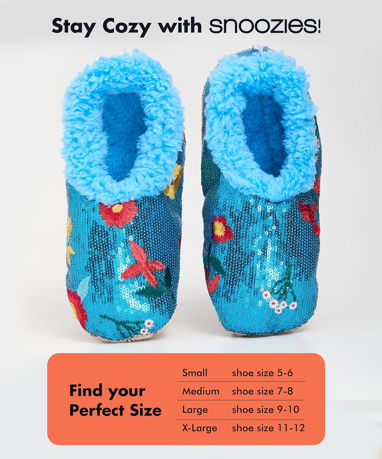 Snoozies Sequin Slippers for Women – Fancy Glitters, Comfy and Cozy Sparkly Non-Slip Womens Slippers Socks(Teal)