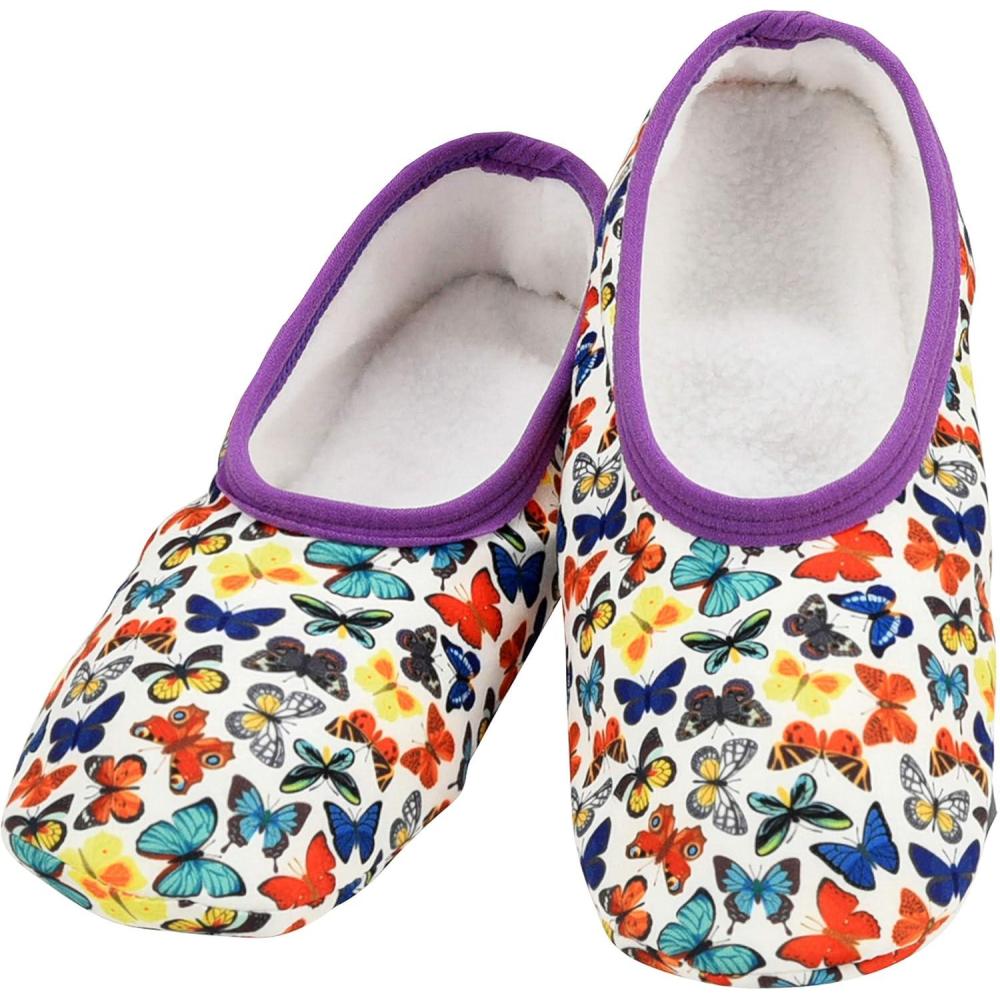Snoozies Skinnies slipper socks for Women – Non-Slip Lightweight Soft Sherpa Lining Foldable Travel(Bflies)