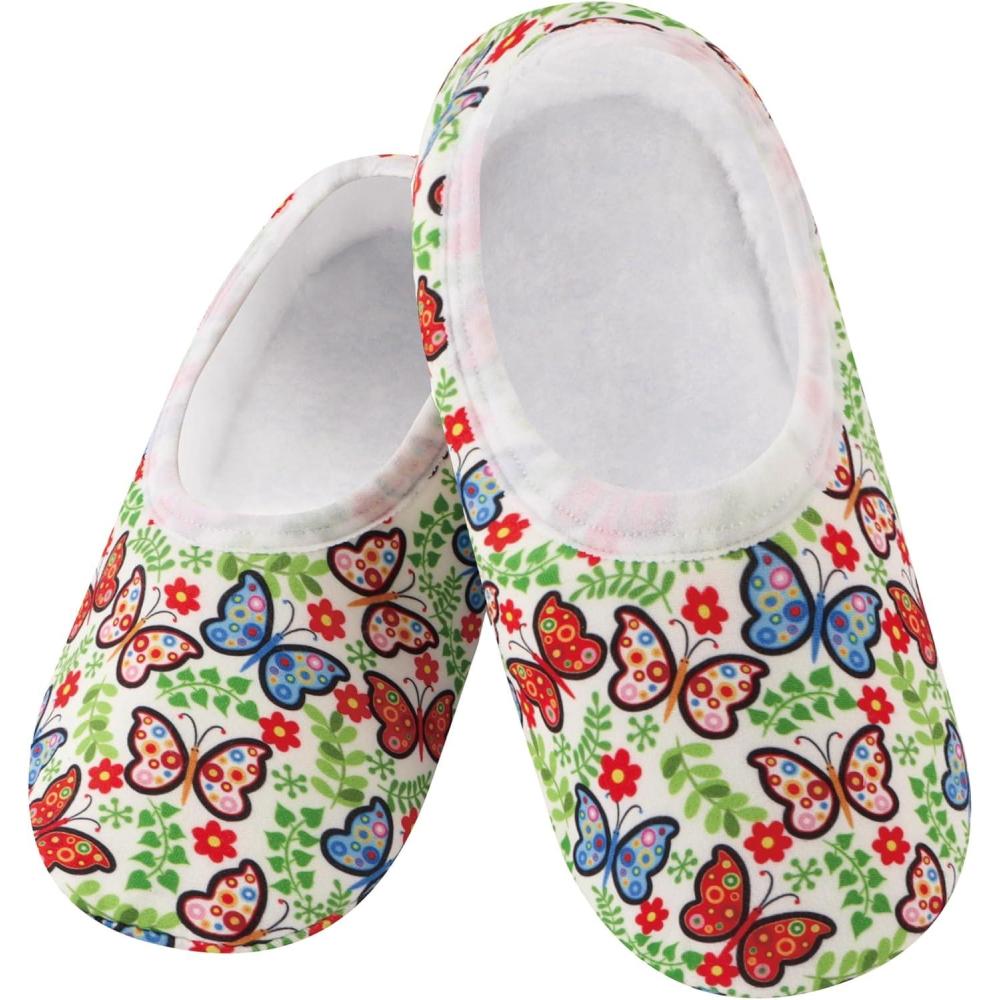 Snoozies Skinnies slipper socks for Women – Non-Slip Lightweight Soft Sherpa Lining Foldable Travel(D-bflies)