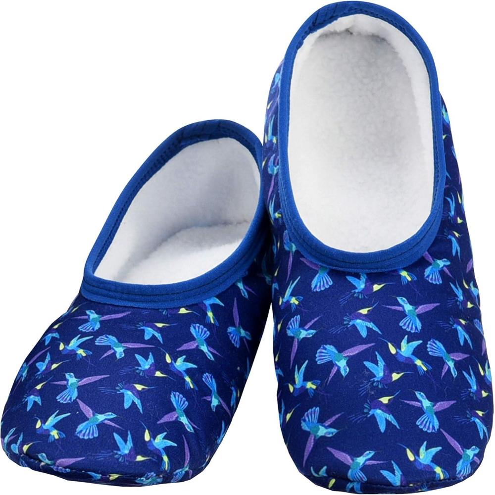 Snoozies Skinnies slipper socks for Women – Non-Slip Lightweight Soft Sherpa Lining Foldable Travel(Hummingbirds)