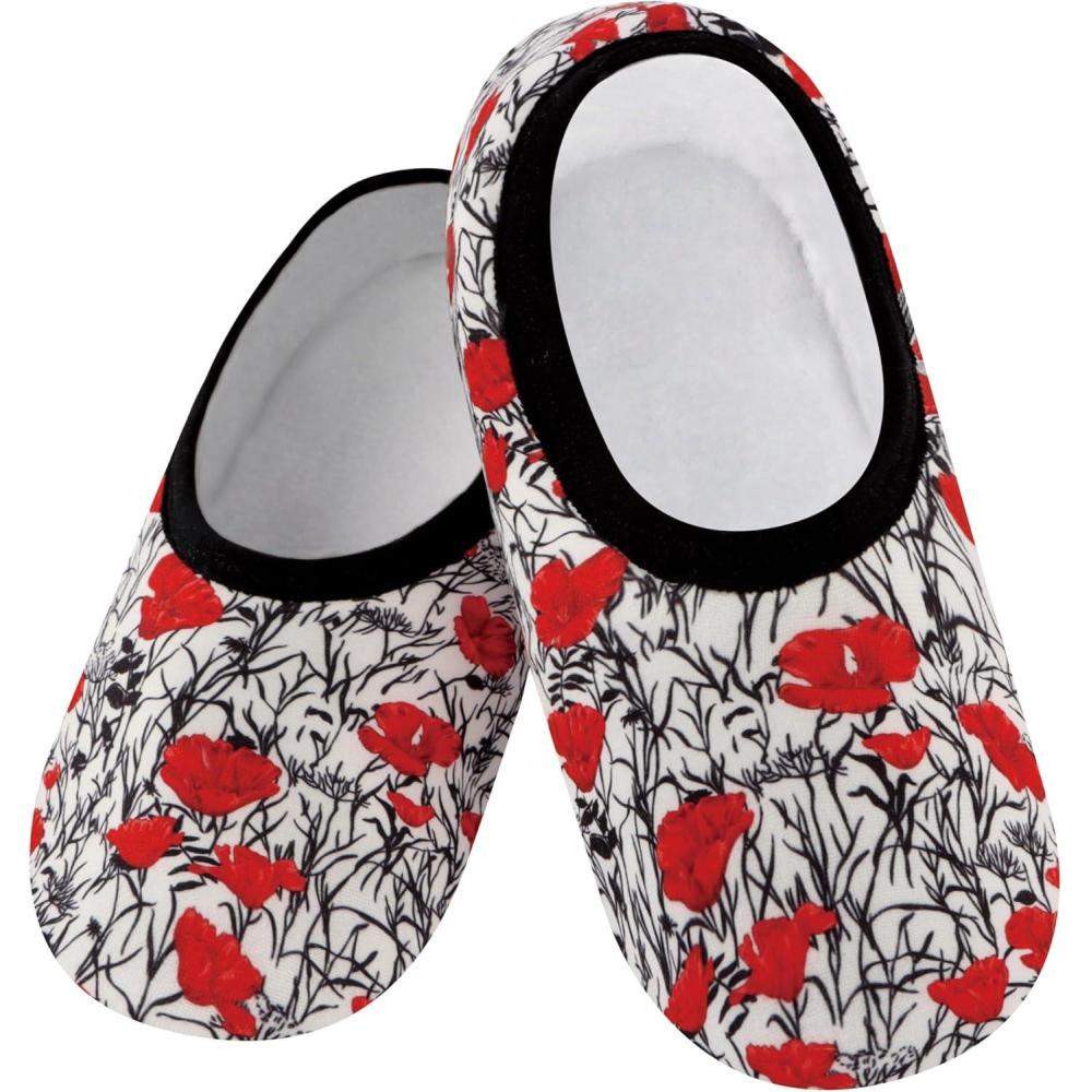 Snoozies Skinnies slipper socks for Women – Non-Slip Lightweight Soft Sherpa Lining Foldable Travel(Poppies)