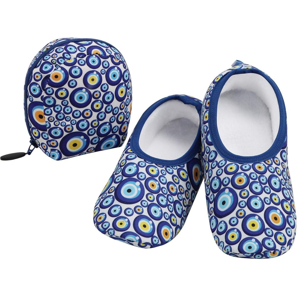 Snoozies Skinnies Womens Slipper Socks – Non-Slip Slippers with a Lightweight Sherpa Lining – Travel Slippers with Storage Pouch(Pdbfly)