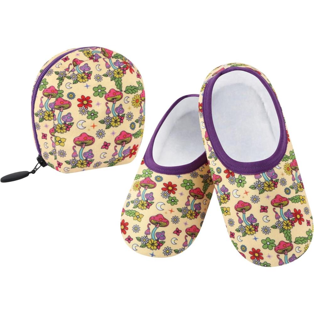 Snoozies Skinnies Womens Slipper Socks – Non-Slip Slippers with a Lightweight Sherpa Lining – Travel Slippers with Storage Pouch(Daisy)
