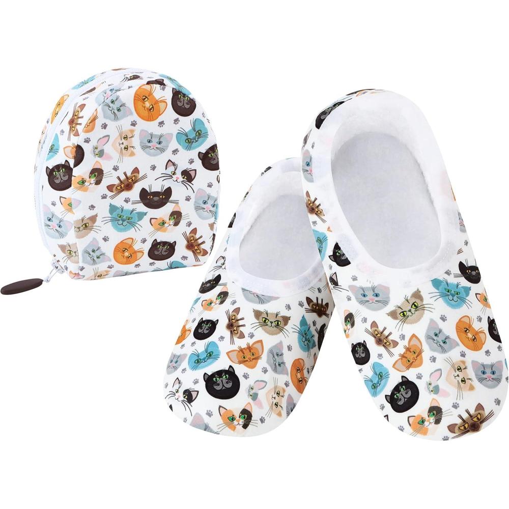 Snoozies Skinnies Womens Slipper Socks – Non-Slip Slippers with a Lightweight Sherpa Lining – Travel Slippers with Storage Pouch(Kitten)